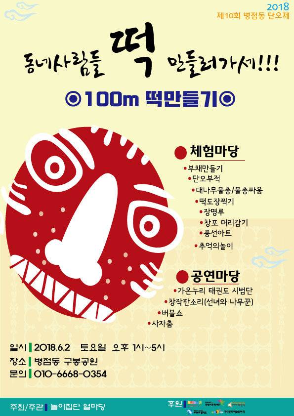 병점동 단오제 안내 작성자 관리자 작성일 2018년 5월 20일 9시 38분 48초 조회 1,420 2018-단오제-웹포스터-재단.jpg [ Size : 289.01KB, Down : 1,131 ] 미리보기 다운로드 목록보기