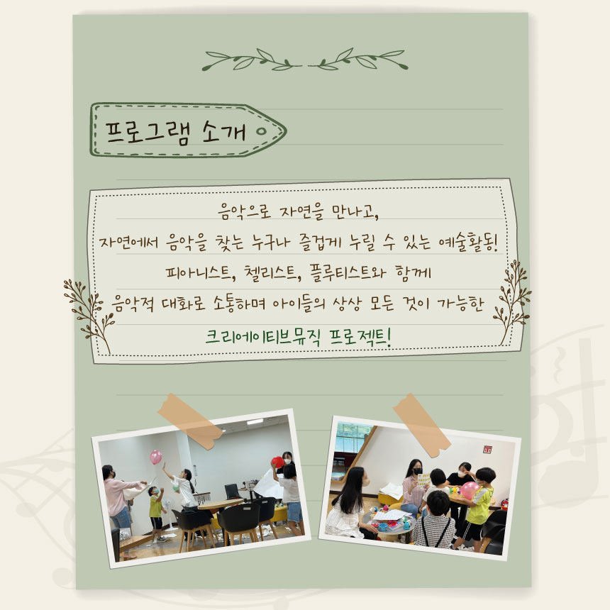 [예술교육 프로그램 참여자모집] '자연스러운 음악' 참여자를 모집합니다!