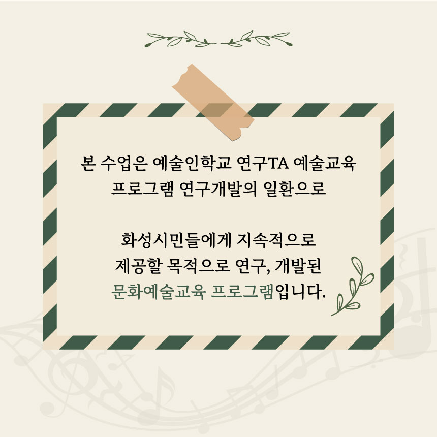 화성시민들에게 지속적으로 제공할 목적으로 연구, 개발된 문화예술교육 프로그램입니다