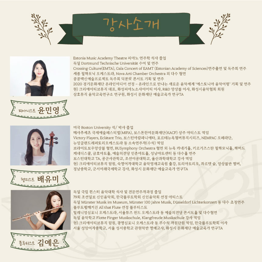 피아니스트, 첼리스트, 플루티스트와 함께 음악적 대화로 소통하며