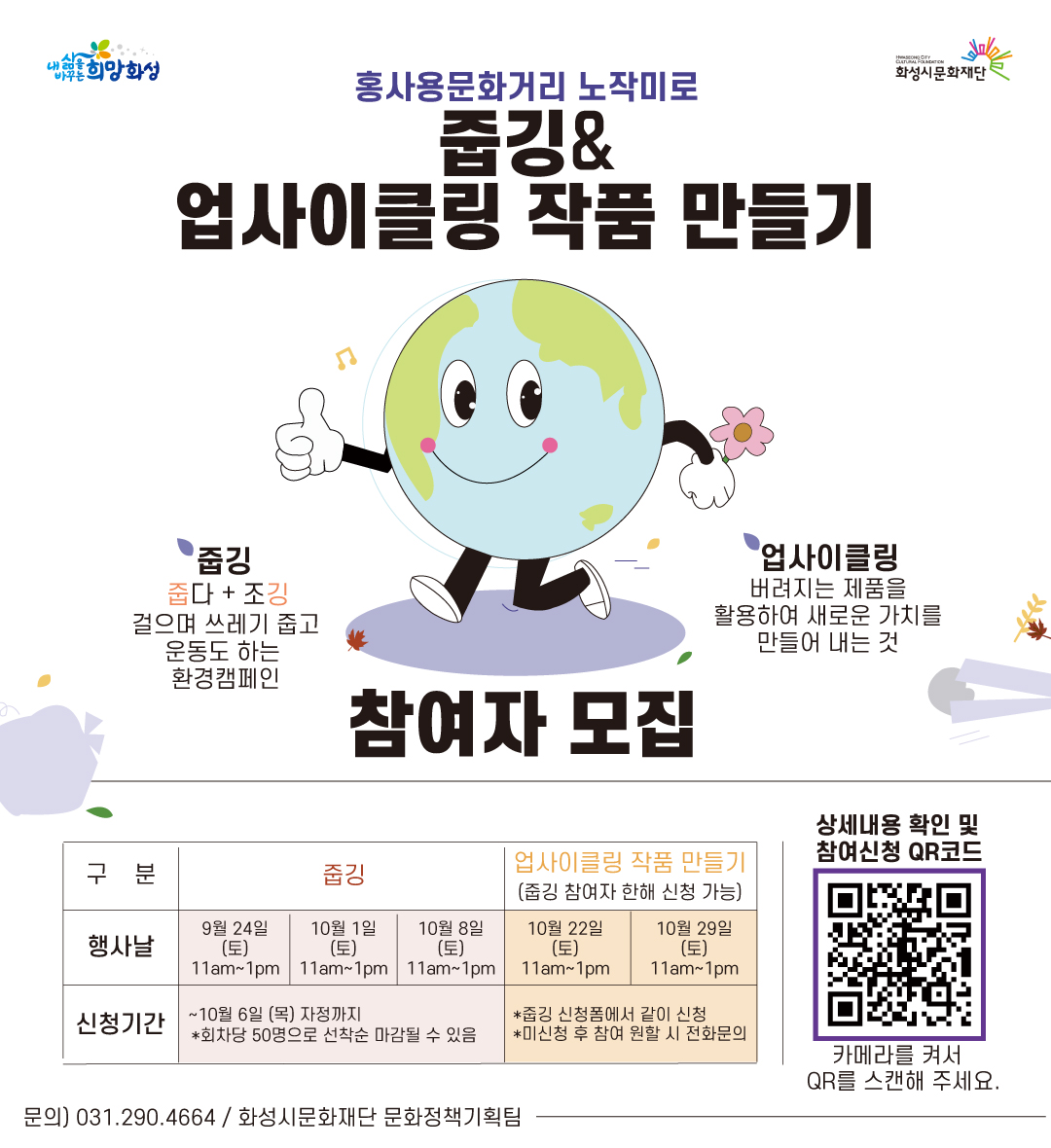 - [줍깅&업사이클링 작품 만들기] : 홍사용 문화거리 일대를 산책하며 쓰레기를 주워 업사이클링 작품을 만드는 프로그램