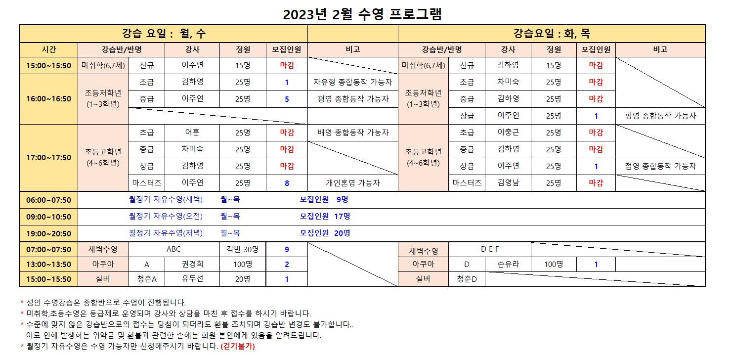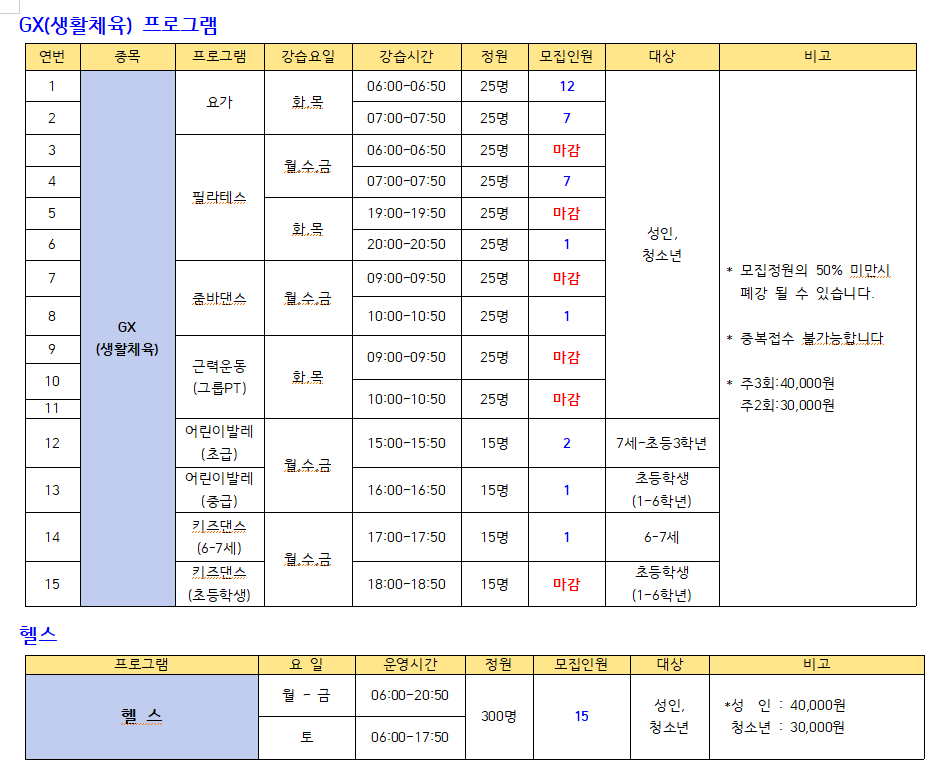 2023년 2월 스포츠 프로그램 추가모집 안내