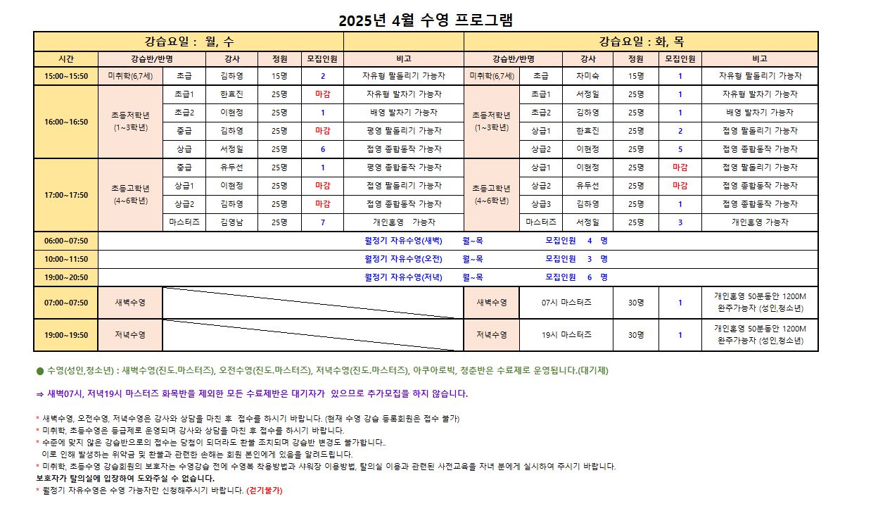 2025년 4월 스포츠 프로그램 추가모집 안내