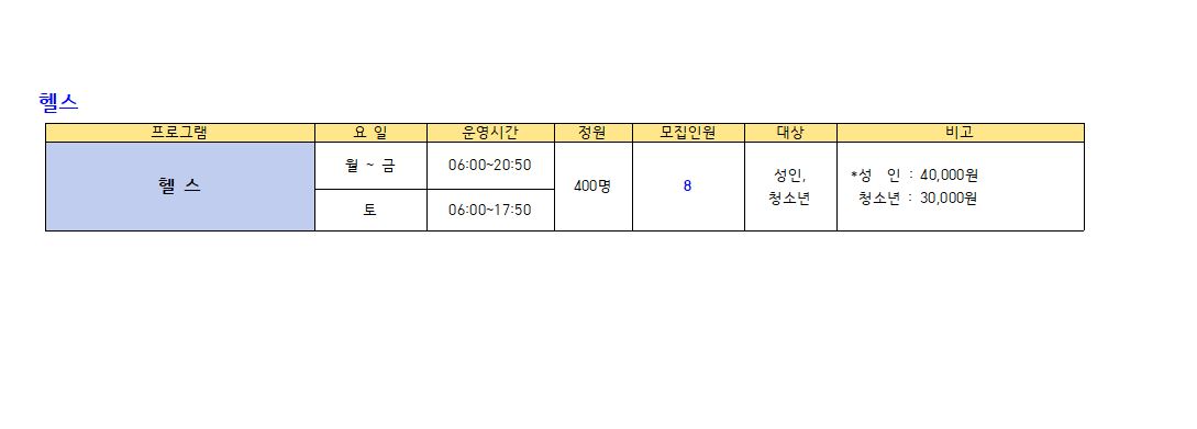 ※수영(성인,청소년) : 새벽수영(진도.마스터즈), 오전수영(진도.마스터즈), 저녁수영(진도.마스터즈), 아쿠아로빅, 청춘반은
