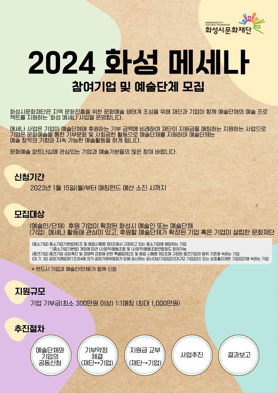 2024 화성메세나 참여기업 및 예술단체 모집