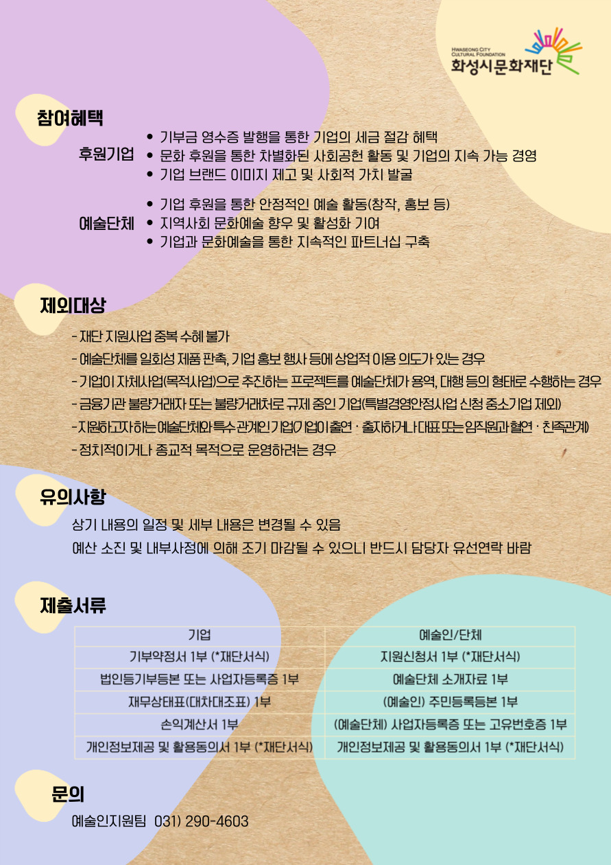 (예술인/단체) 후원 기업이 확정된 화성시 예술인 또는 예술단체
