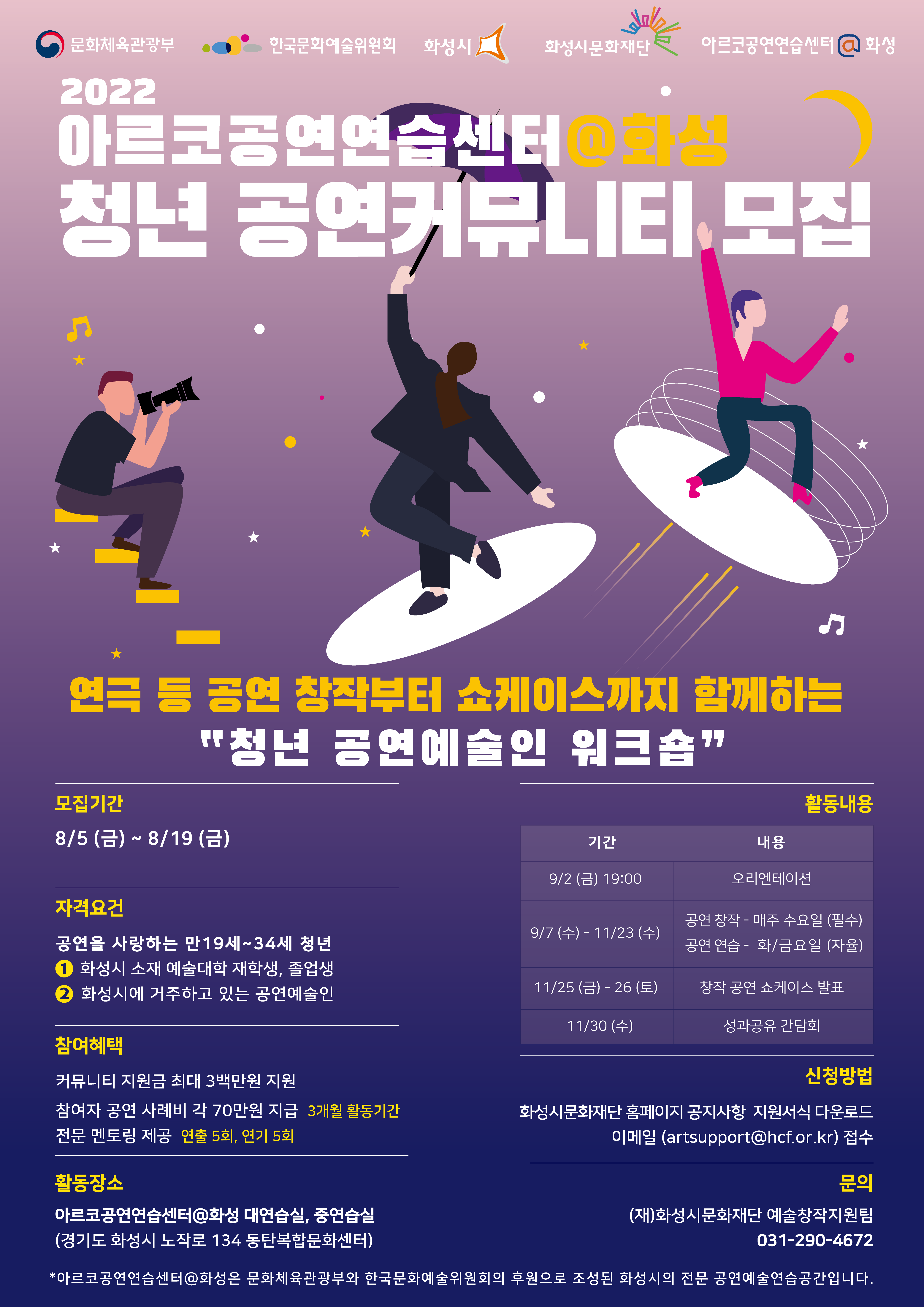 □ 건 명 : 2022 아르코공연연습센터@화성 청년 공연커뮤니티 모집