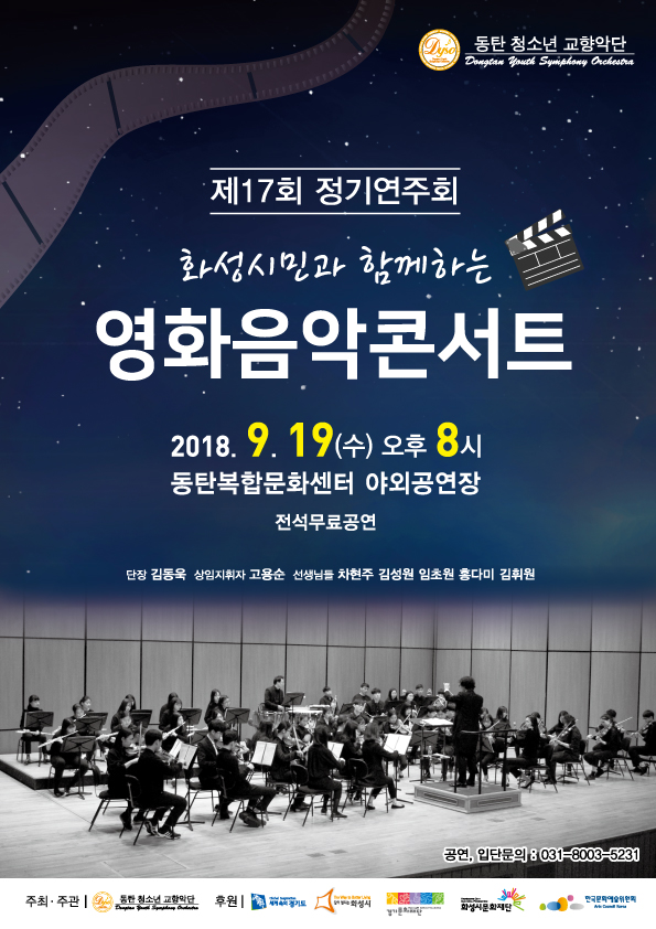 2018년도 지역예술활동지원 선정사업 동탄 청소년교양악단 '화성시민과 함께하는 영화음악 콘서트' 작성자 관리자 작성일 2018년 9월 6일 10시 54분 34초 조회 1,247 포스터 이미지.jpg [ Size : 283.13KB, Down : 980 ] 미리보기 다운로드 목록보기