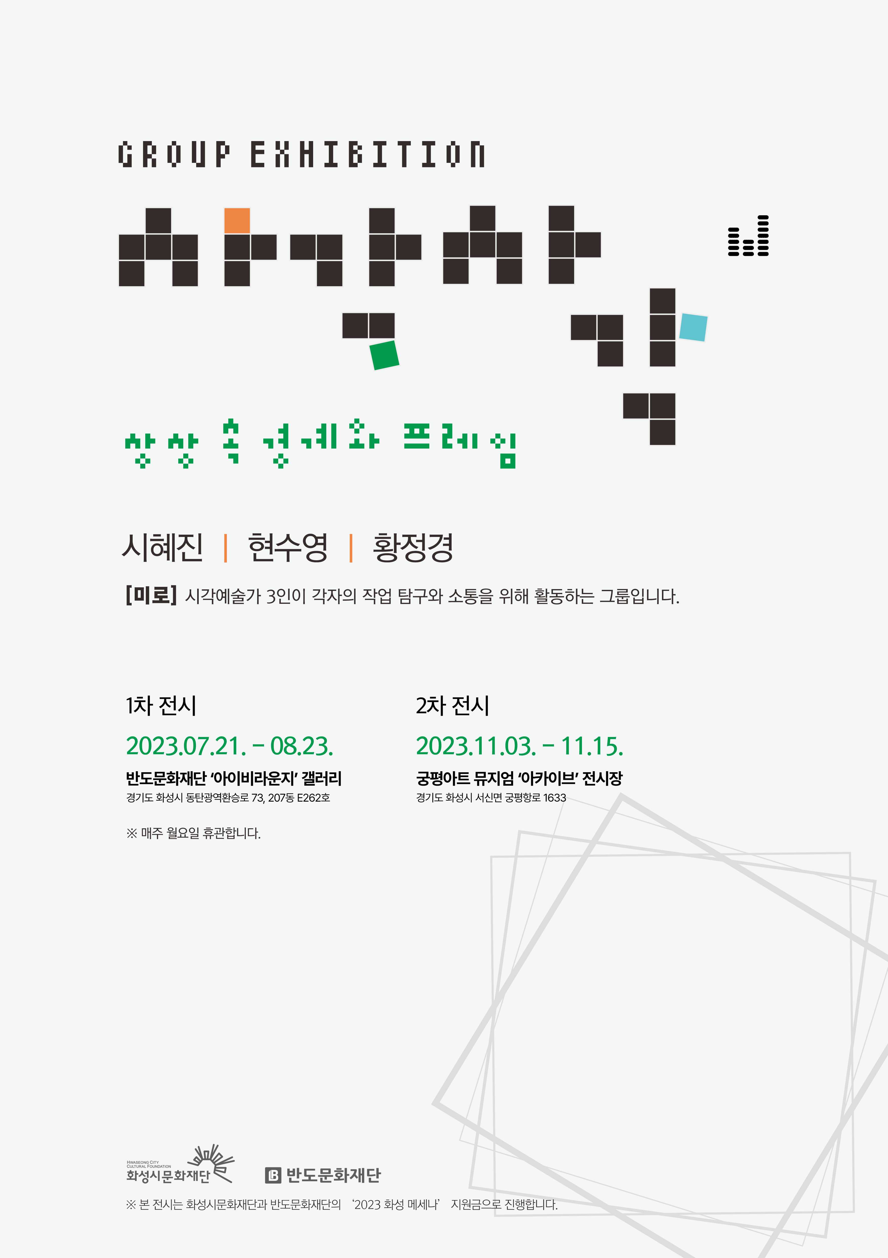 * 본 전시는 화성시문화재단과 반도문화재단의 '2023 화성 메세나' 지원금으로 진행합니다.