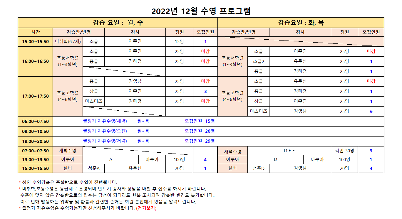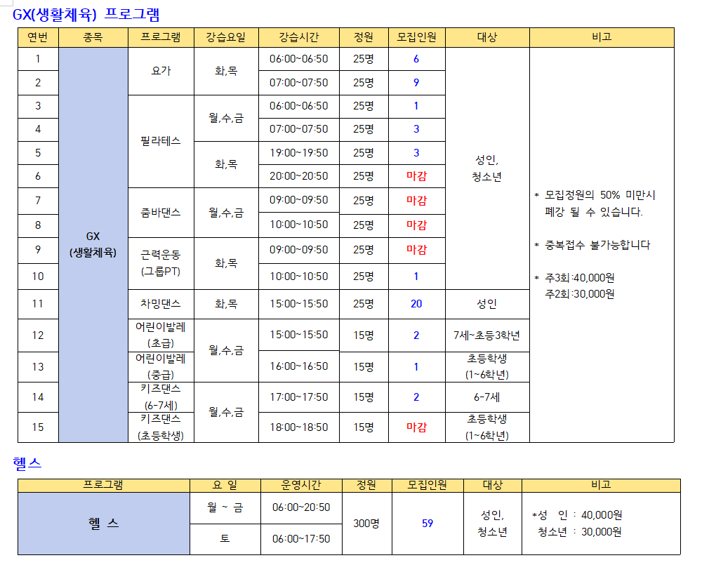 2022년 12월 스포츠 프로그램 추가모집 안내