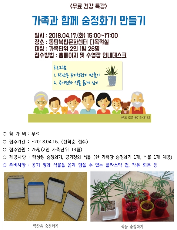 [무료 건강 특강]가족과 함께 숨정화기 만들기 작성자 관리자 작성일 2018년 4월 30일 18시 39분 42초 조회 905 20180322_103628.jpg [ Size : 256.38KB, Down : 407 ] 미리보기 다운로드 온라인 신청 링크 : http://naver.me/GTmiJRNd 목록보기
