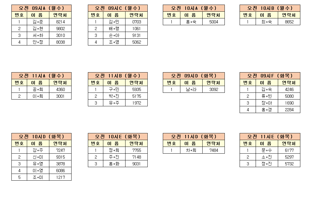 -강습반명, 성명, 전화번호 뒷자리, 강습요일을 확인하시고 강습에 참여해 주시기 바랍니다.