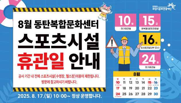 동탄복합문화센터 스포츠시설 휴관일을 안내드립니다.