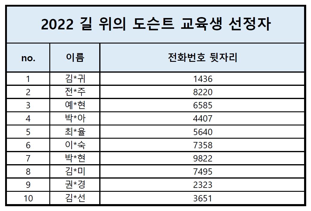2022년 10월 29일(토) ~ 12월 3일(토) 진행되는 <길 위의 도슨트>프로그램 교육생에 선정된 것을 축하드립니다.