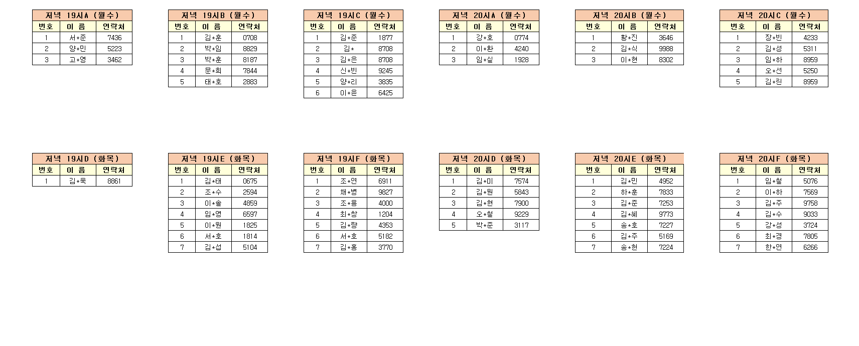 -강습반명, 성명, 전화번호 뒷자리, 강습요일을 확인하시고 강습에 참여해 주시기 바랍니다.