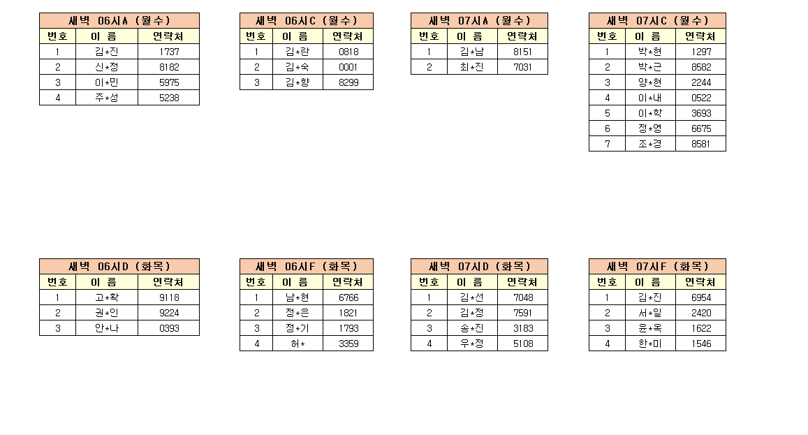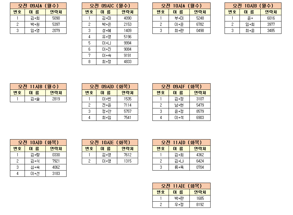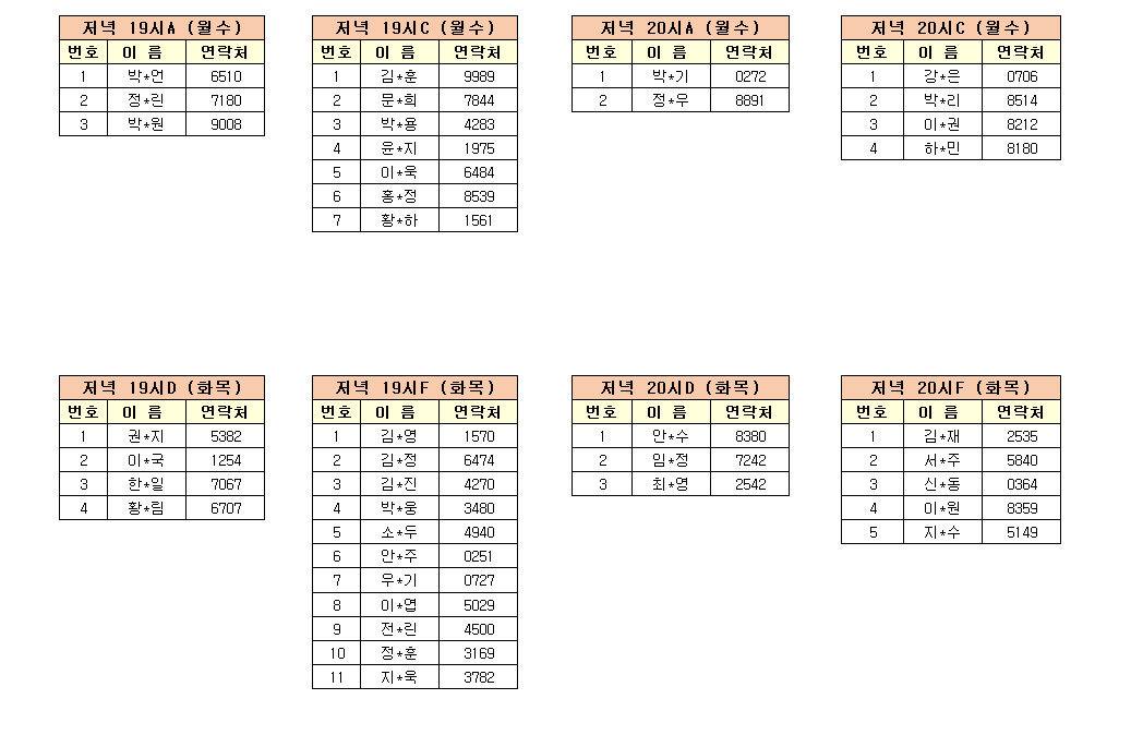 -강습반명, 성명, 전화번호 뒷자리, 강습요일을 확인하시고 강습에 참여해 주시기 바랍니다.