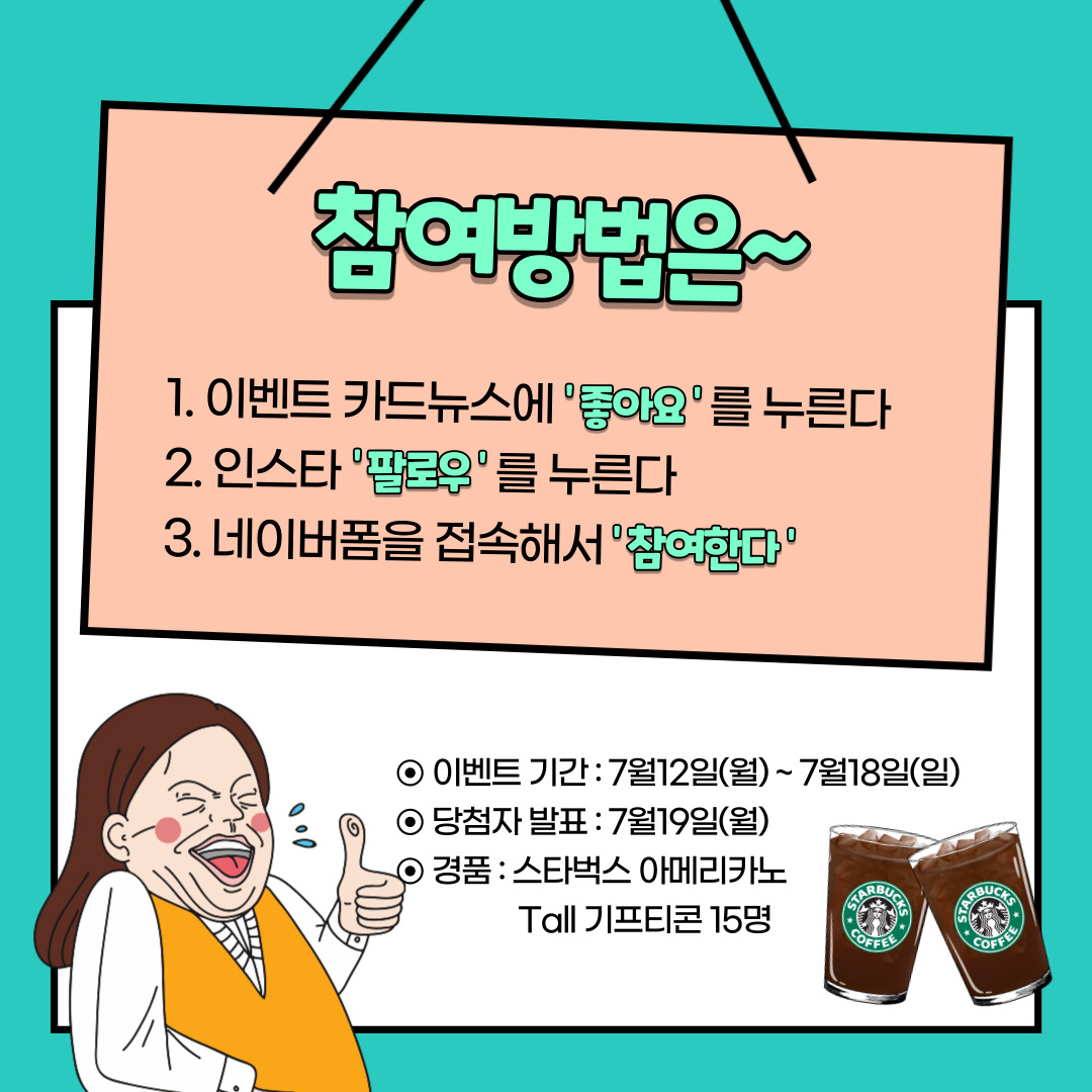 이번 이벤트에 참여해주신 분 중 추첨을 통해 시원한 아메리카노를 쏩니다!!