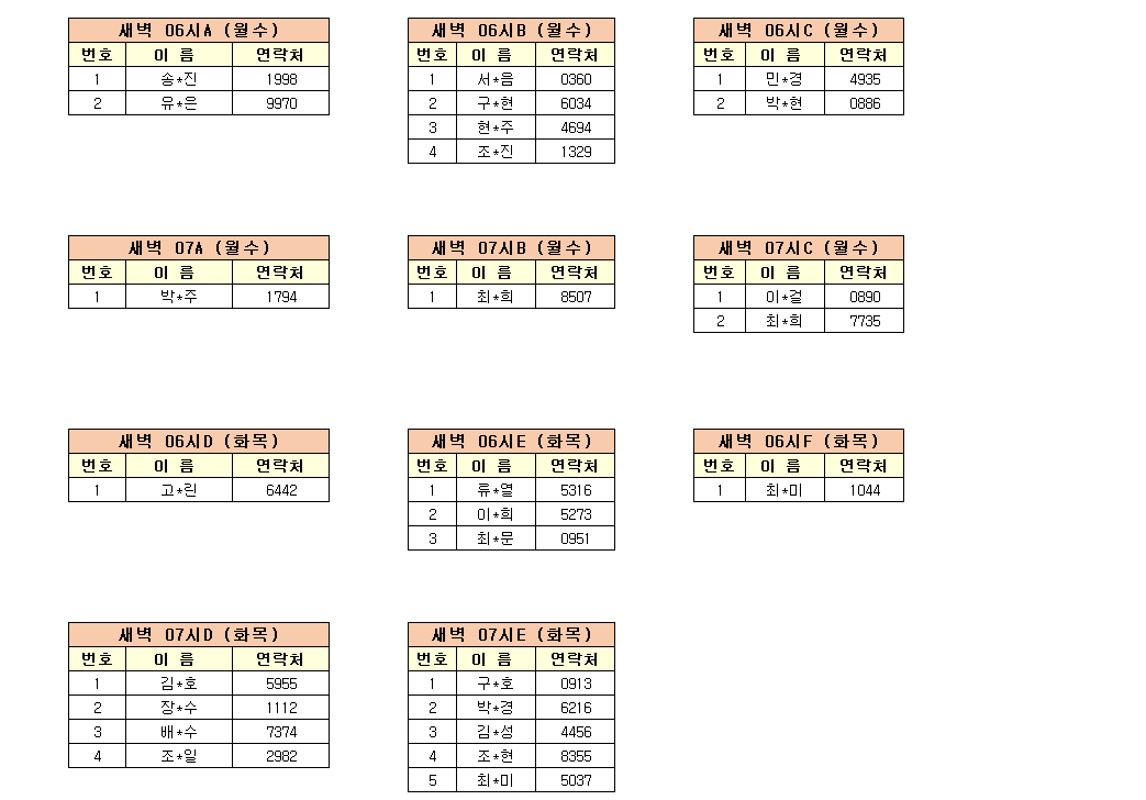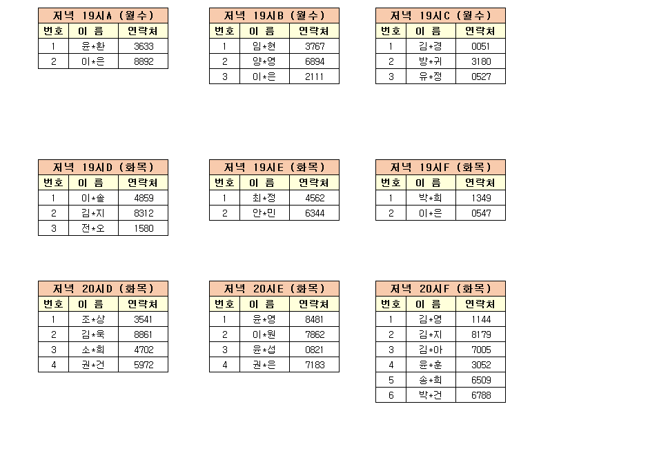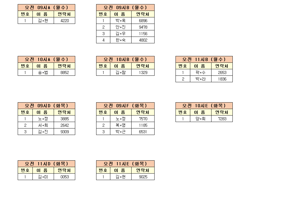 -강습반명, 성명, 전화번호 뒷자리, 강습요일을 확인하시고 강습에 참여해 주시기 바랍니다.