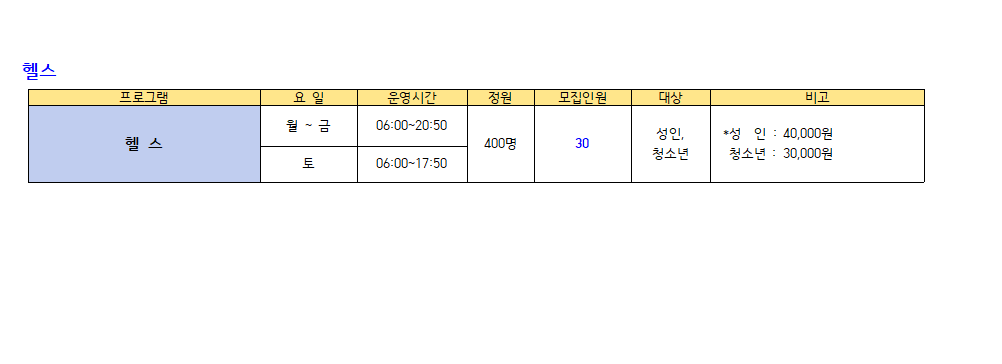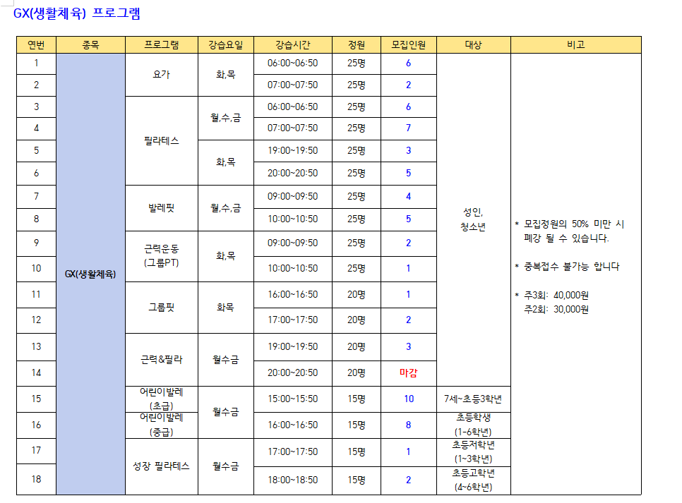 ● 모집프로그램: 수영 프로그램, GX(생활체육), 헬스
