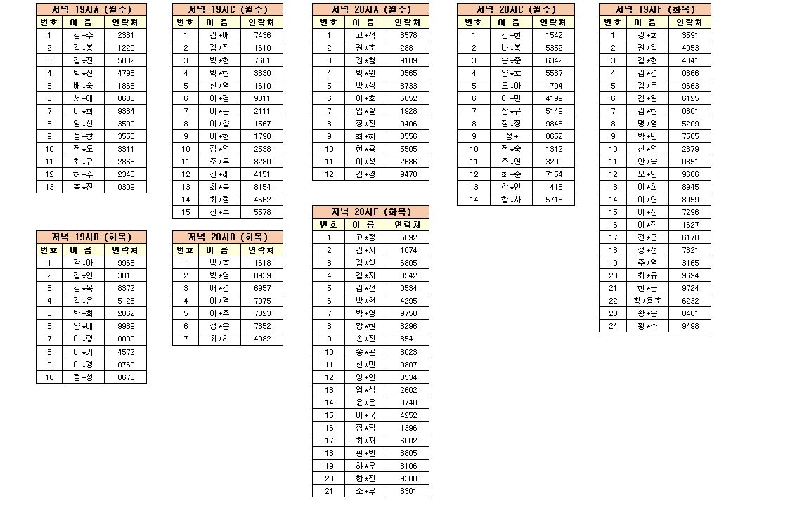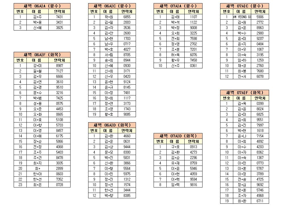 -강습반명, 성명, 전화번호 뒷자리, 강습요일을 확인하시고 강습에 참여해 주시기 바랍니다.