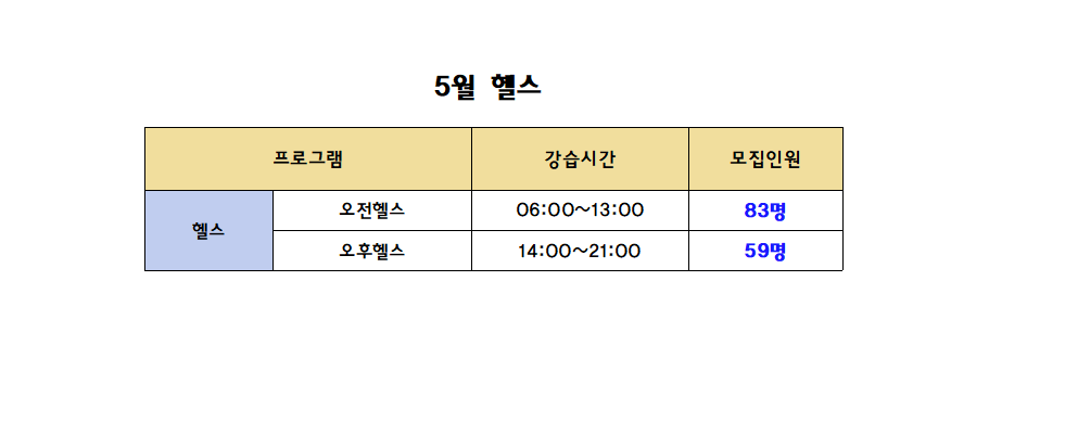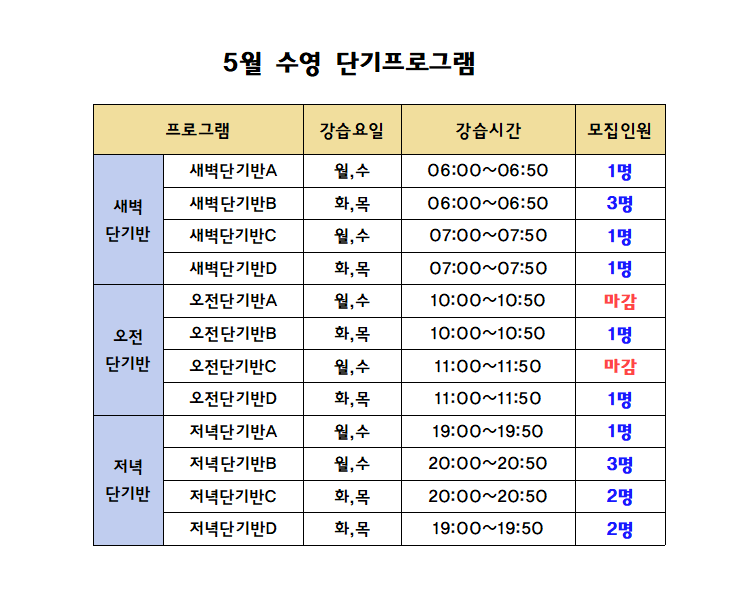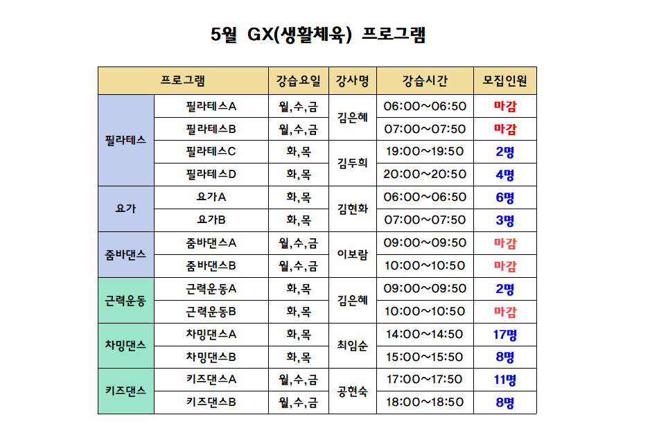 [스포츠] 5월 스포츠 프로그램 추가모집 안내