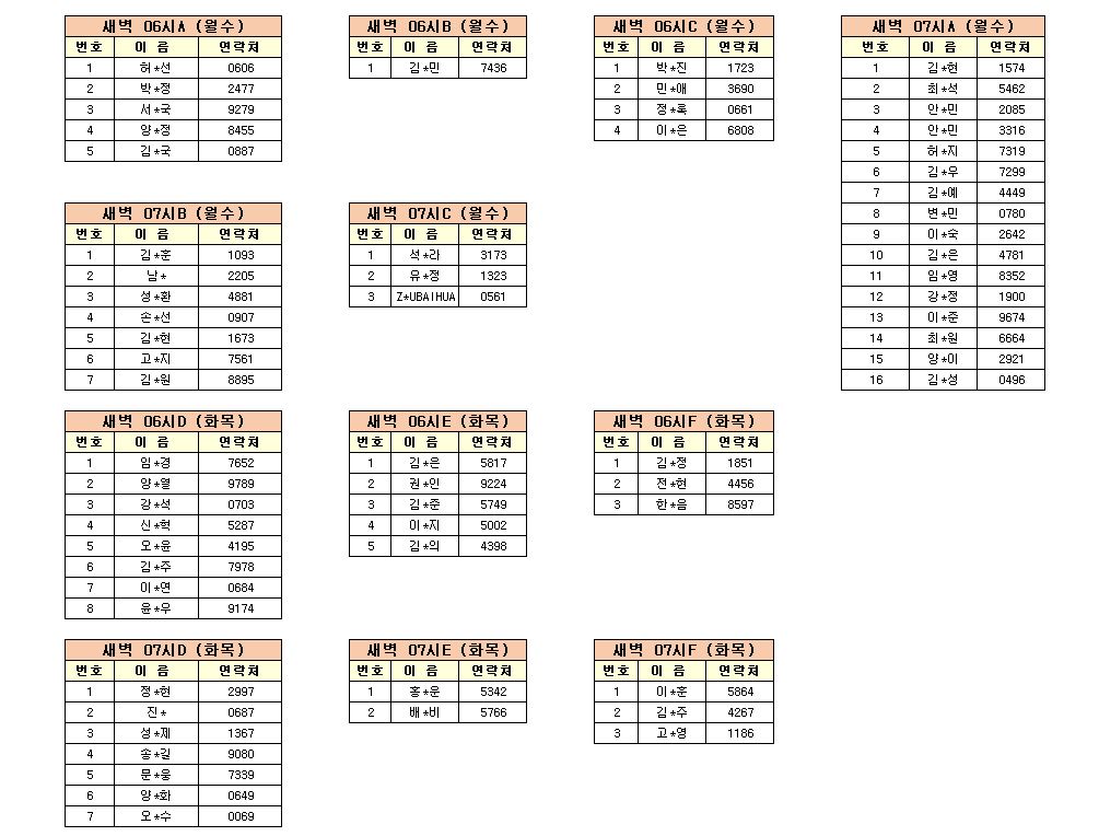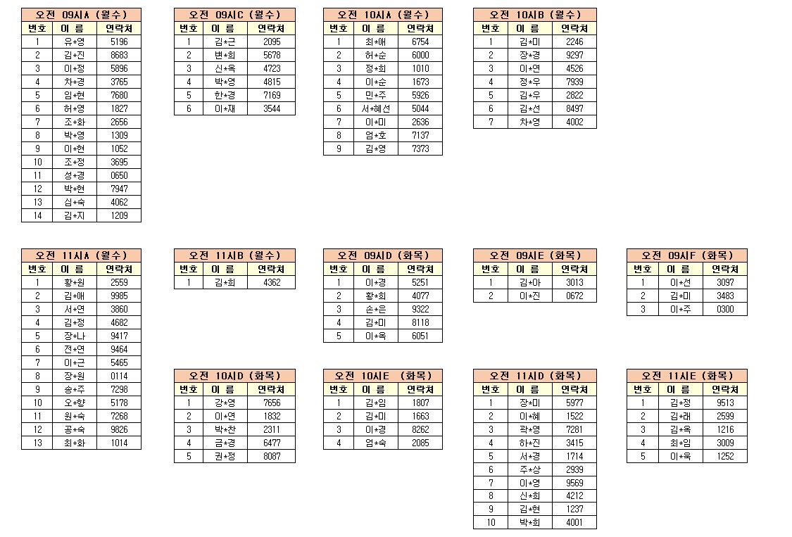 -강습반명, 성명, 전화번호 뒷자리, 강습요일을 확인하시고 강습에 참여해 주시기 바랍니다.