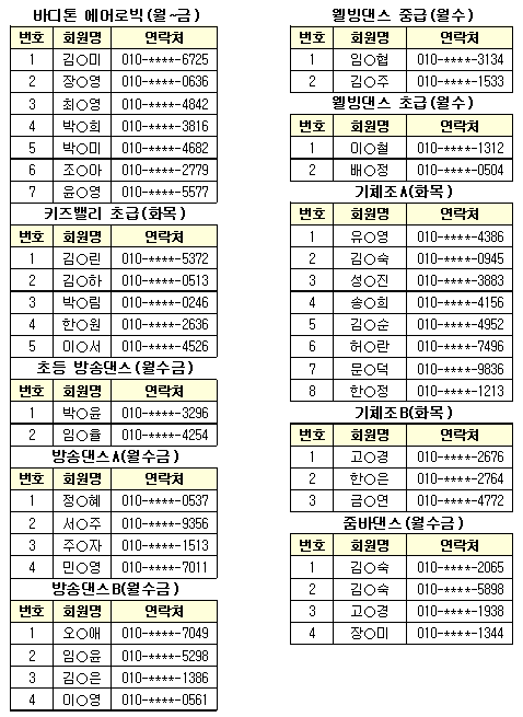 ★ 강습반 : 에어로빅 외 16종목