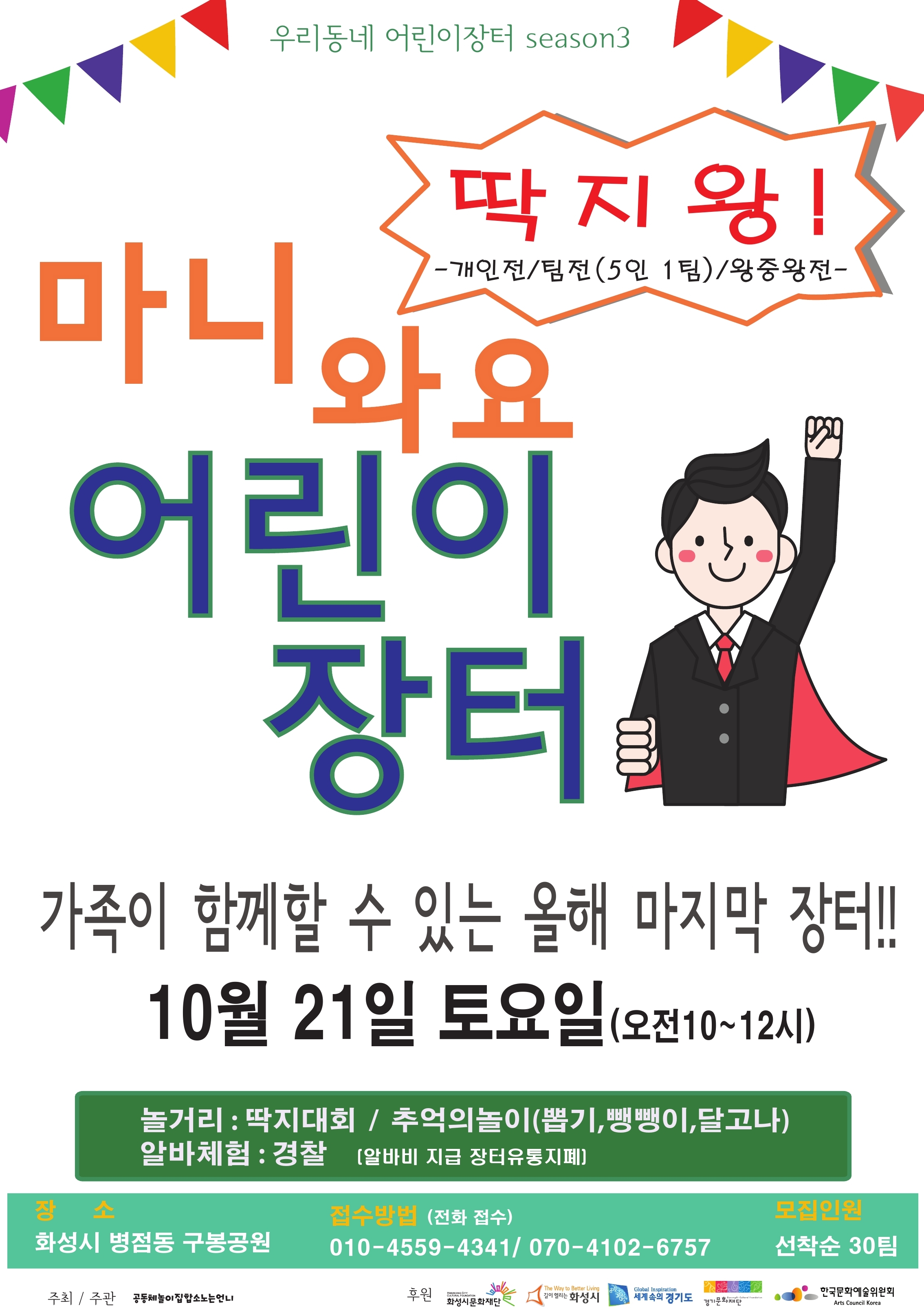 [문화사업팀] 2017 문화예술육성지원사업 선정사업 <마니와요 어린이 장터> 작성자 방은지 작성일 2017년 10월 12일 13시 22분 19초 조회 1,994 10월_21일_어린이장터_(2).jpg [ Size : 1.25MB, Down : 343 ] 미리보기 다운로드 목록보기