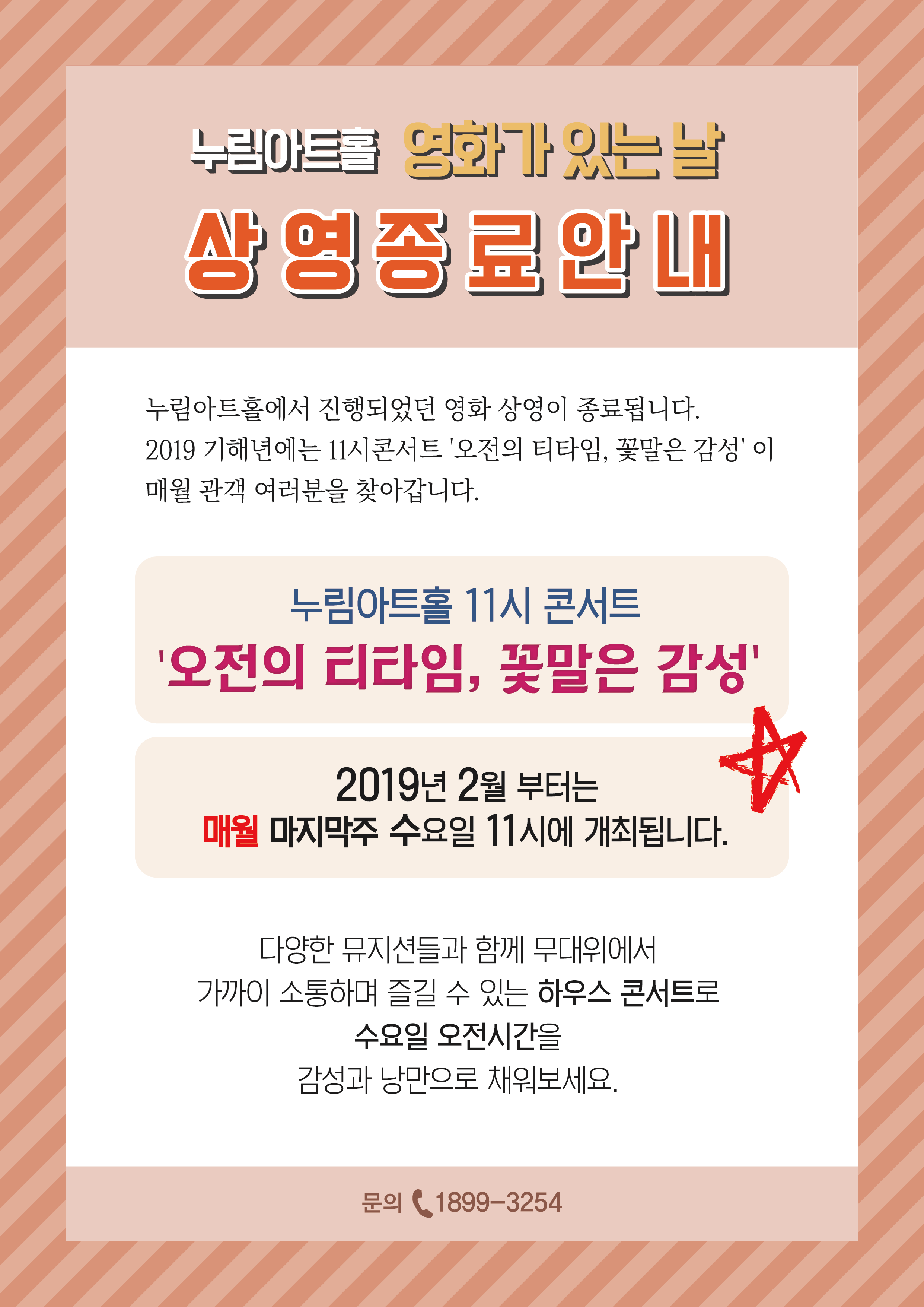 누림아트홀 영화상영 종료안내 작성자 관리자 작성일 2019년 1월 4일 15시 23분 42초 조회 1,011 영화가있는날_사업종료안내(수정)2.png [ Size : 381.94KB, Down : 683 ] 미리보기 다운로드 목록보기