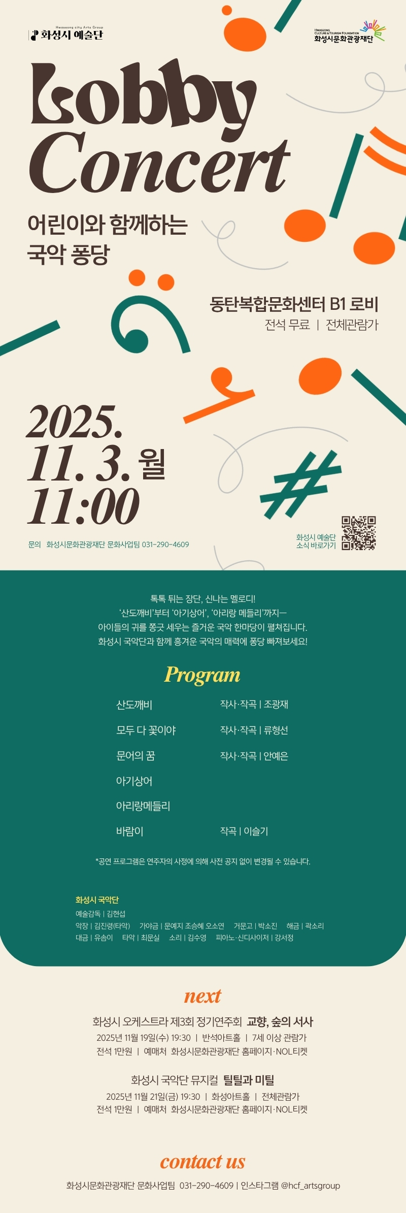 [화성시 예술단 로비콘서트] 어린이와 함께하는 국악 퐁당(11.3.월 11:00)