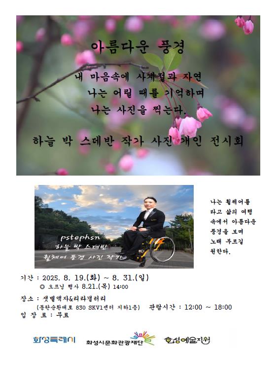 본 전시는 <2025 화성예술지원> 장애·다문화 예술인 특화지원 사업 지원을 받아 진행됩니다.