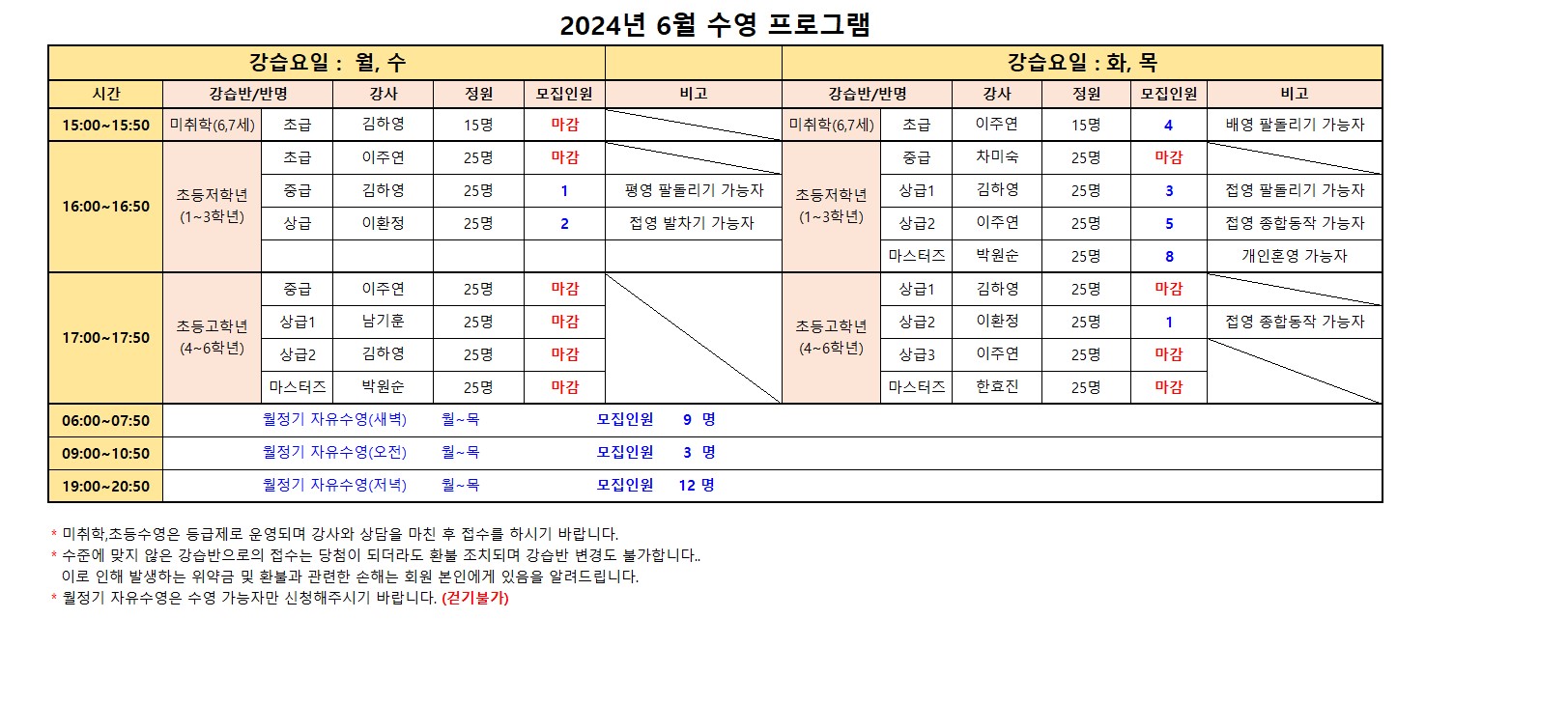 2024년 6월 스포츠 프로그램 추가모집 안내