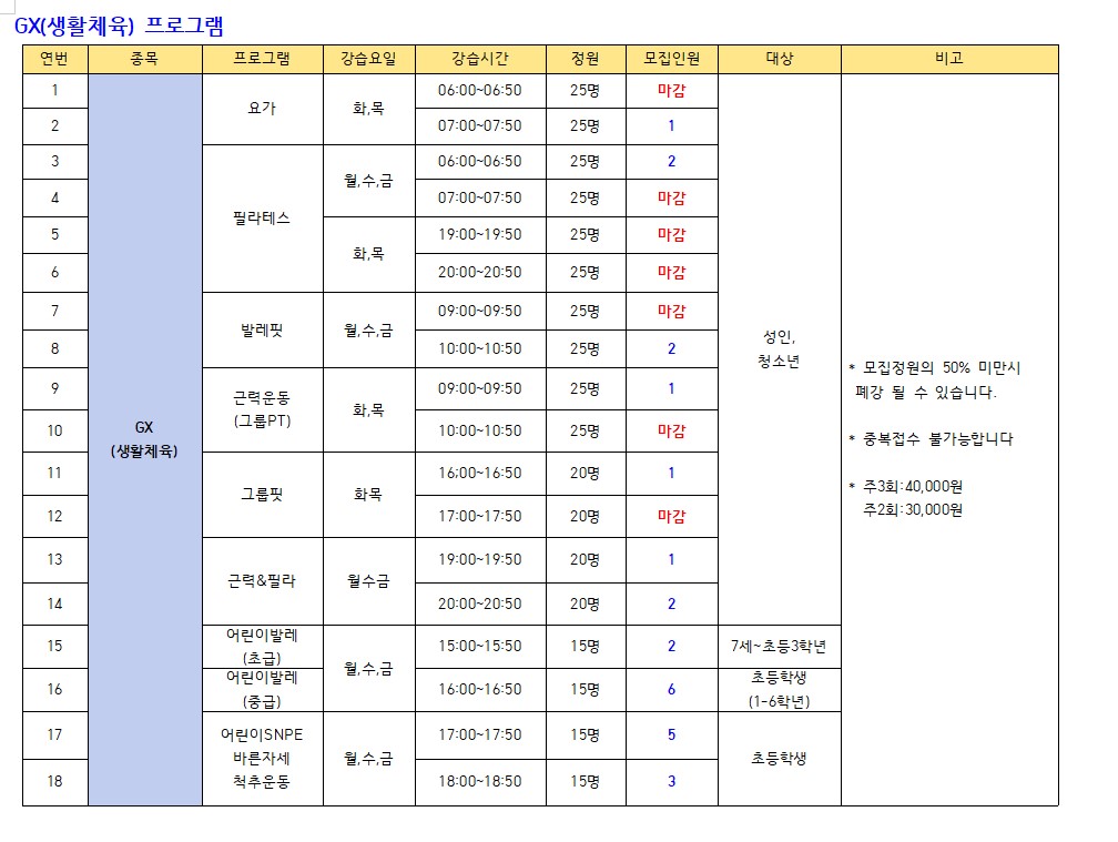 [스포츠] 6월 스포츠 프로그램 추가모집 안내