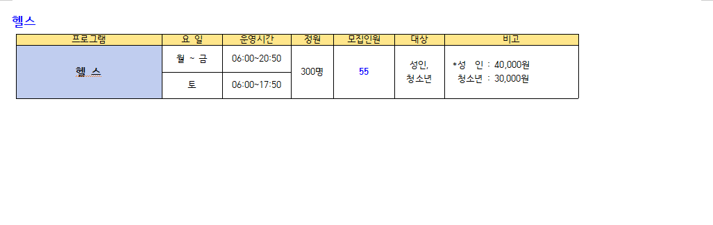 ● 모집프로그램: 수영(미취학. 초등저학년. 초등고학년, 월정기자유수영), GX(생활체육), 헬스