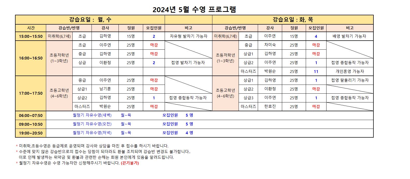 1. 모집정원의 50% 미만시 폐강 될 수 있습니다.