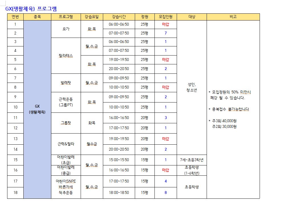 [스포츠] 5월 스포츠 프로그램 추가모집 안내