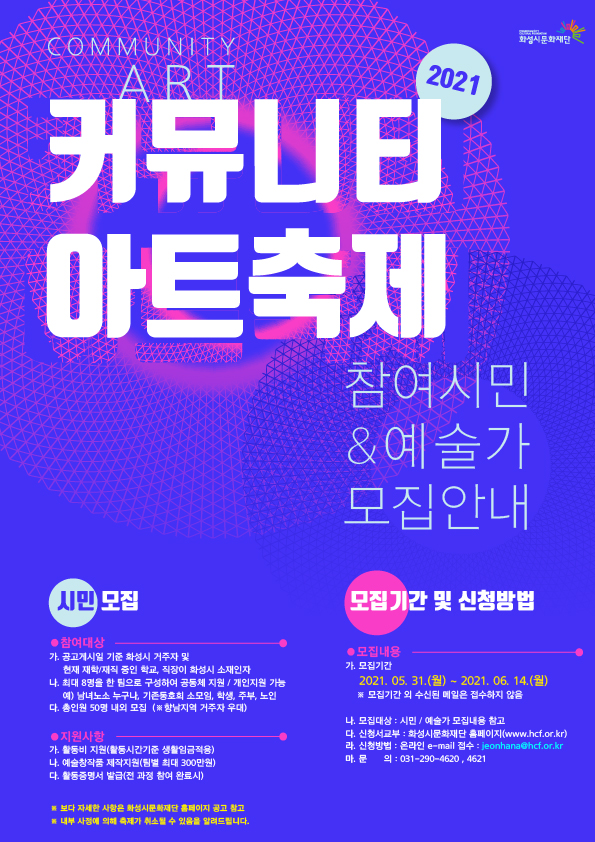 <2021 화성시문화재단 커뮤니티아트축제> 참여 시민/예술가 모집