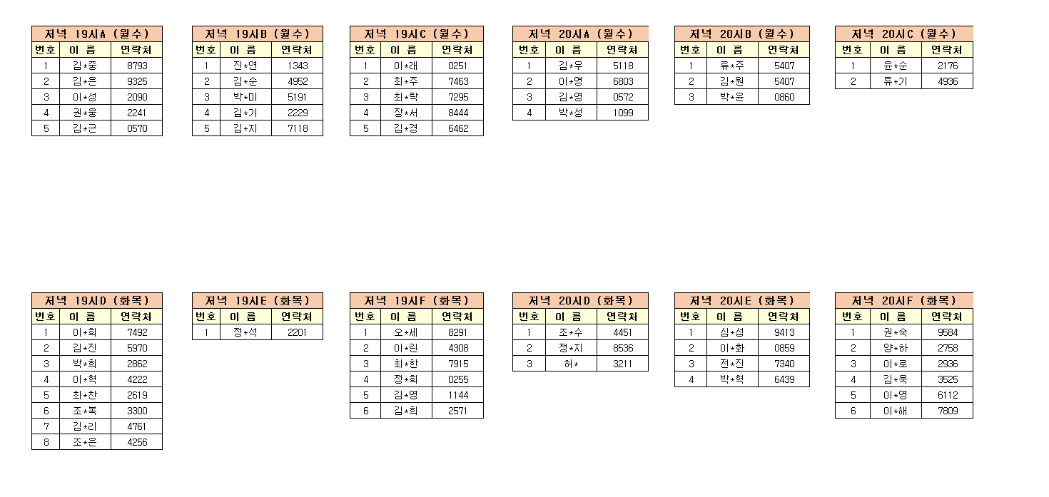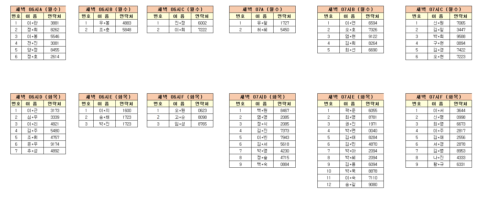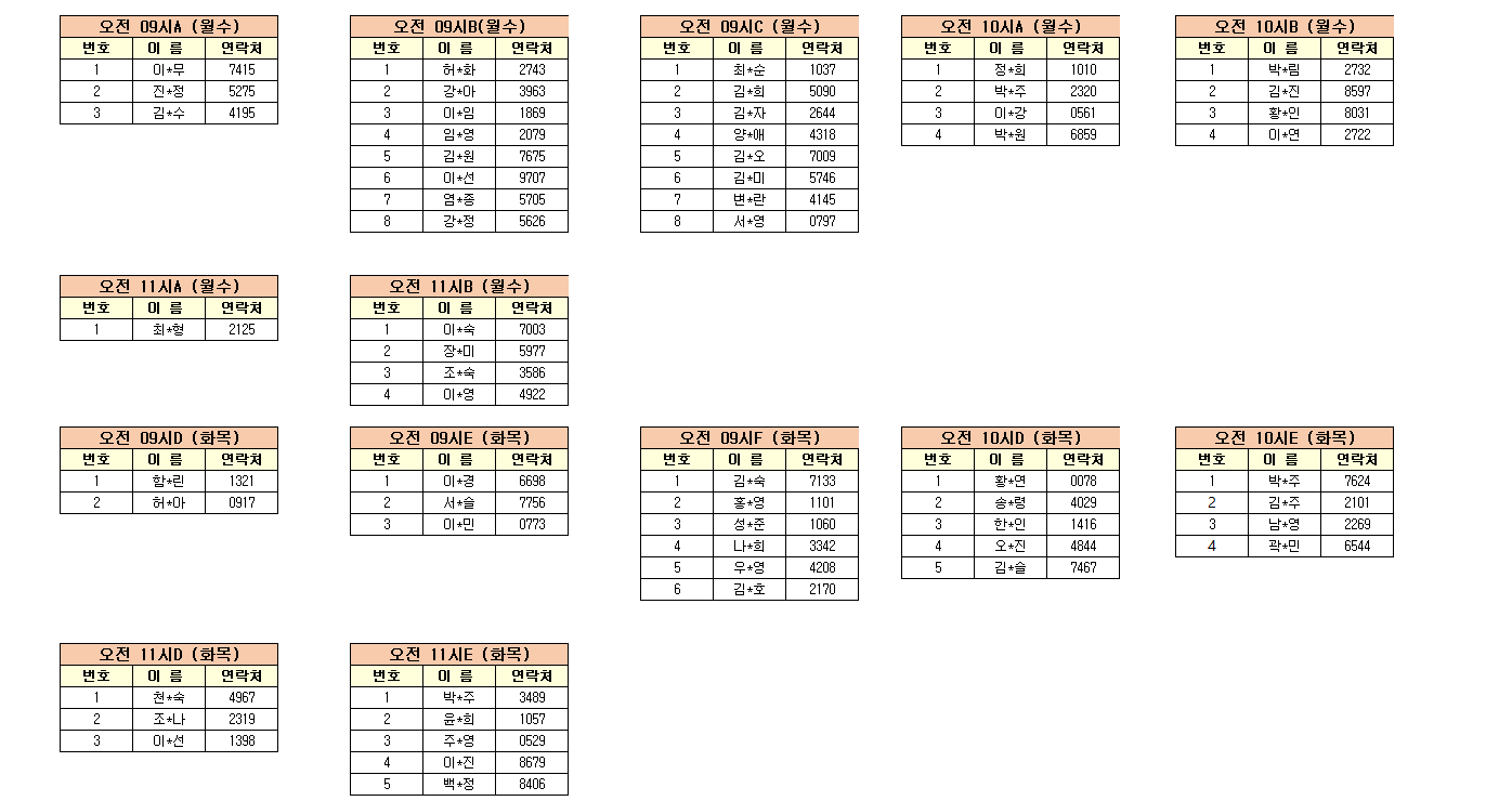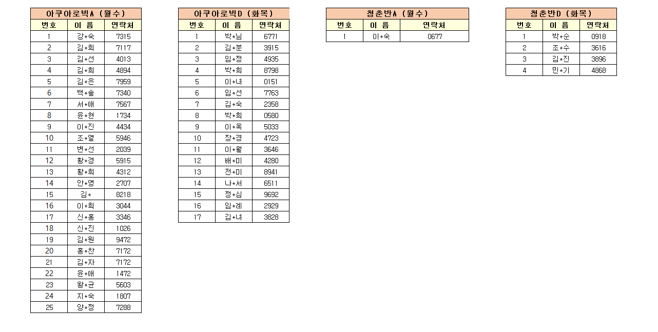 - 강습반명, 성명, 전화번호 뒷자리, 강습요일을 확인하시고 강습에 참여해 주시기 바랍니다.