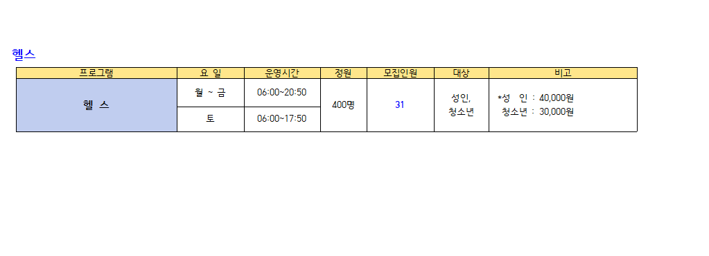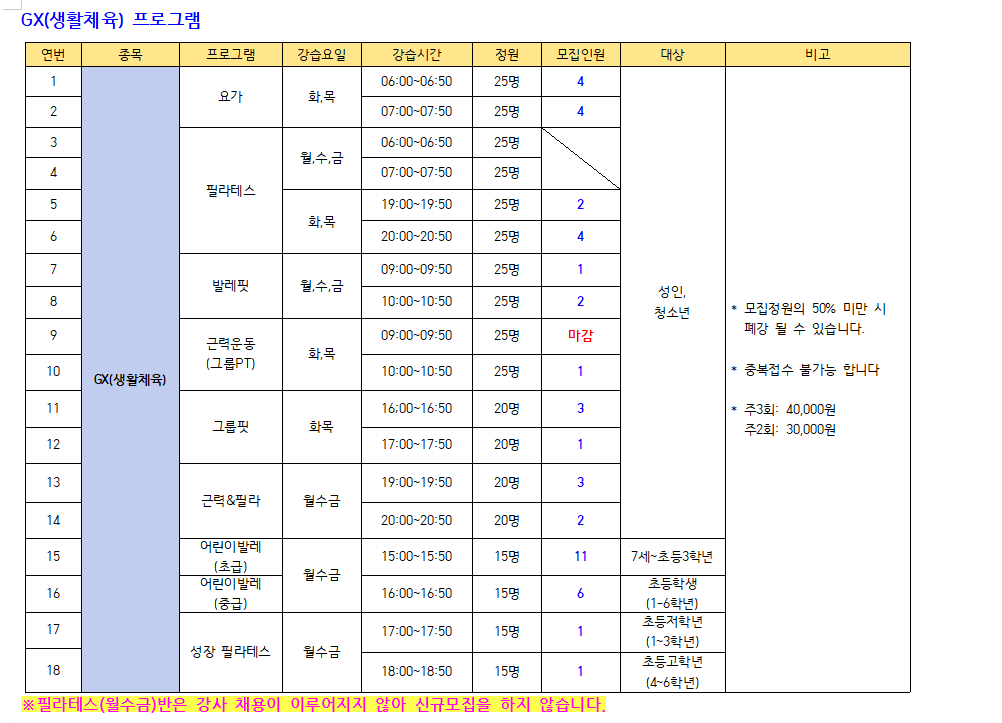 ● 모집프로그램: 수영 프로그램, GX(생활체육), 헬스