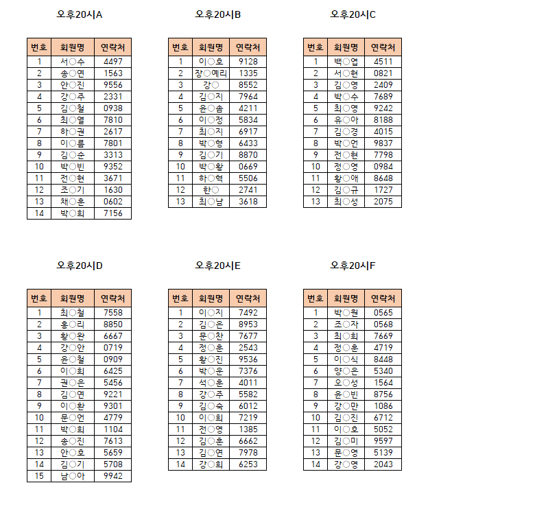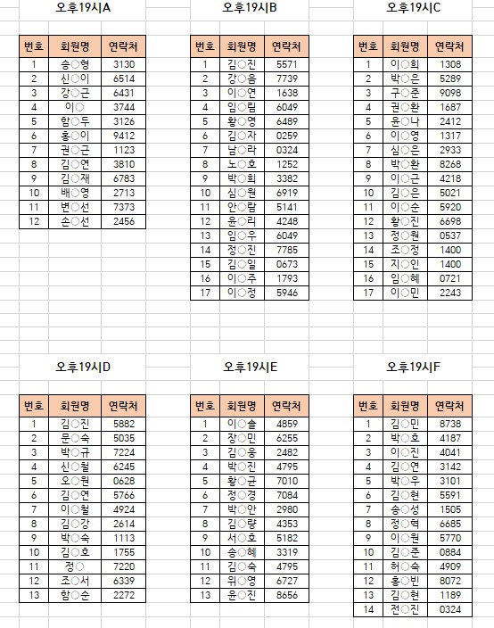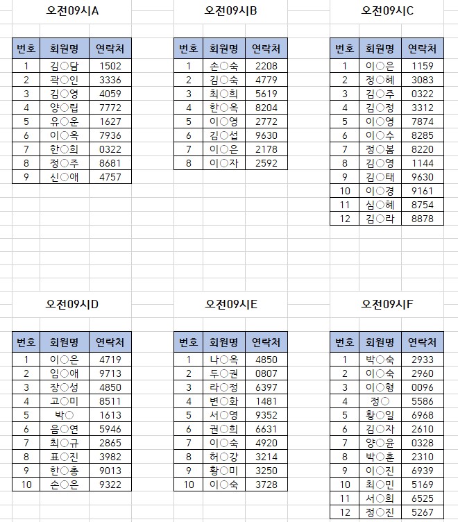 -강습반명, 성명, 전화번호 뒷자리, 강습요일 확인하시고 방문 부탁드리겠습니다