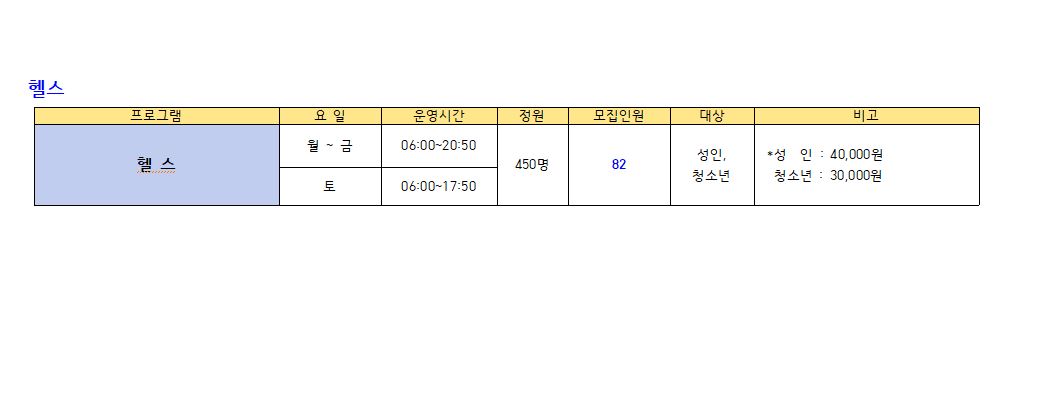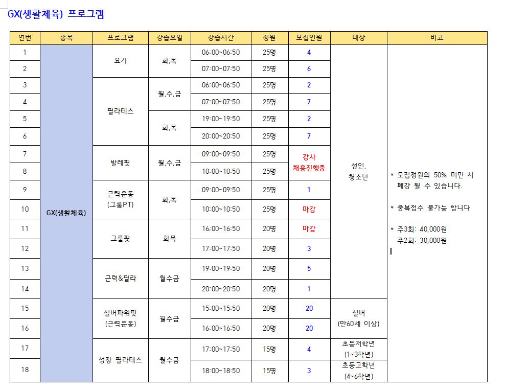 ● 모집프로그램: 수영 프로그램, GX(생활체육), 헬스