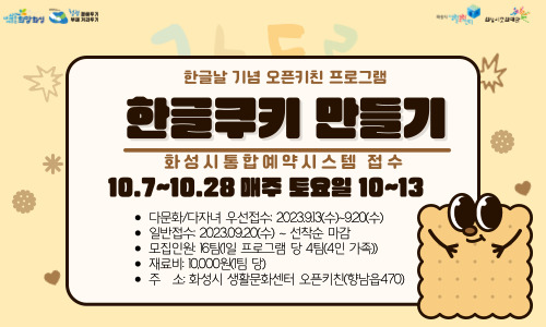 [화성시생활문화센터] 오픈키친 10월 프로그램<한글쿠키 만들기> 참여자 모집 안내