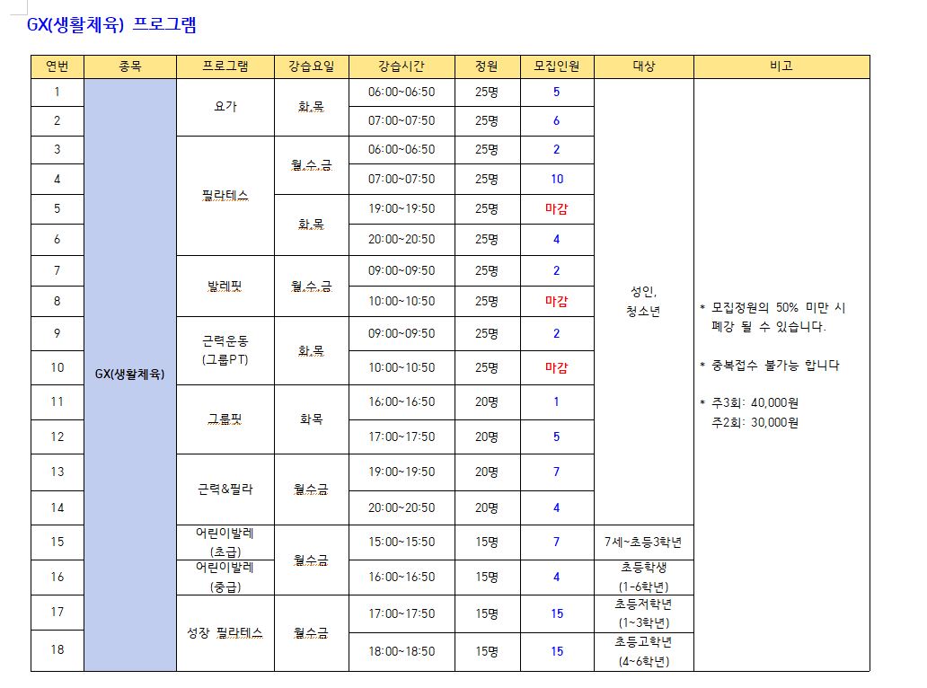 ● 모집프로그램: 수영 프로그램, GX(생활체육), 헬스