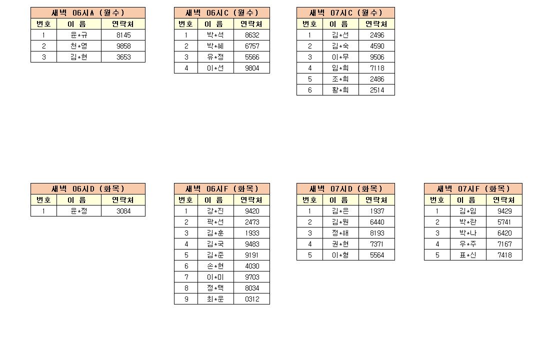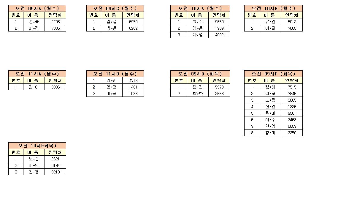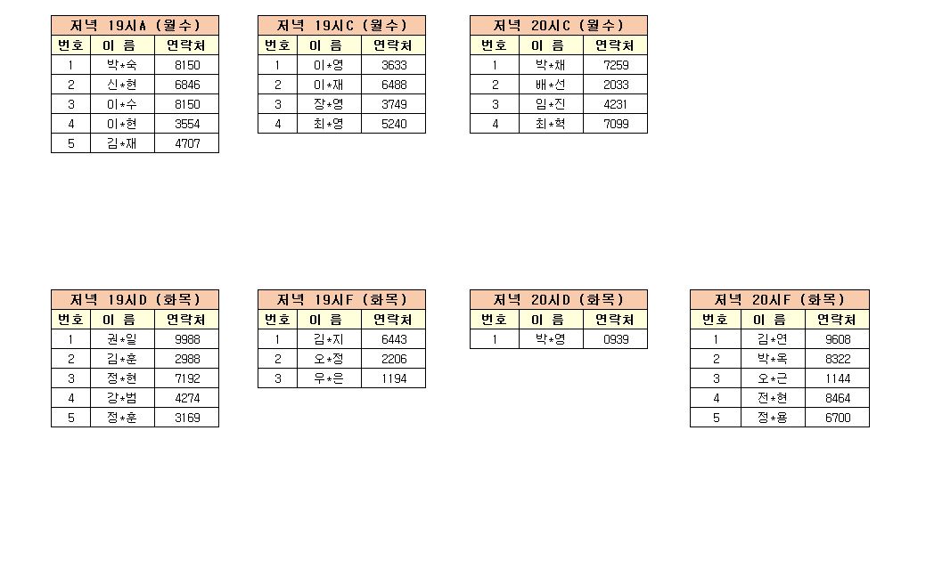 -강습반명, 성명, 전화번호 뒷자리, 강습요일을 확인하시고 강습에 참여해 주시기 바랍니다.