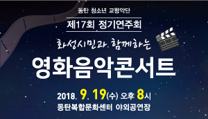 【[공 연]대관공연】동탄청소년교향악단 장소 동탄복합문화센터 야외공연장 기간 2018년 9월 19일 ~ 2018년 9월 19일 공연시간 2018/9/19 20:00 티켓정보 전석무료 관람등급 전체관람가 문의 031-8003-5231 동탄청소년교향악단 배너.jpg [ Size : 43.07KB, Down : 346 ] 미리보기 다운로드 670-3790px.jpg [ Size : 1.35MB, Down : 489 ] 미리보기 다운로드 목록보기