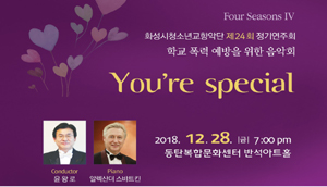 【[공 연]대관공연】화성시청소년교향악단 제 24 회 정기연주회 You're Specail 장소 반석아트홀 기간 2018년 12월 28일 ~ 2018년 12월 28일 공연시간 19:00 티켓정보 전석무료 - 화성시음악협회 (www.hsmusic.or.kr) 홈페이지에서 티켓 신청 후 당일 데스크에서 수령 관람등급 만5세이상 입장가 문의 031)305-5639 / www.hsmusic.or.kr - 기본이미지12.28.jpg [ Size : 57.01KB, Down : 364 ] 미리보기 다운로드 기본이미지12.28.jpg [ Size : 57.01KB, Down : 363 ] 미리보기 다운로드 상세이미지_12.28.jpg [ Size : 666.78KB, Down : 681 ] 미리보기 다운로드 목록보기