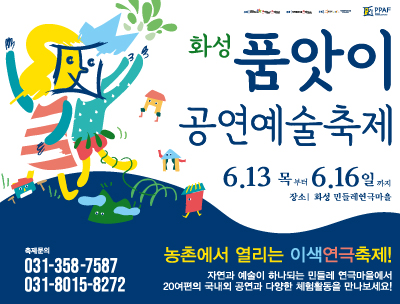 화성시 품앗이 공연예술축제,장소:우정읍 이화리 민들레 연극마을,기간:2019년 6월 13일 ~ 2019년 6월 16일