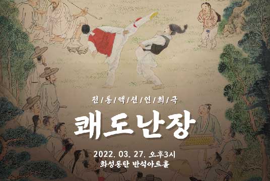 【[공 연]대관공연】 상생의놀이판 쾌도난장 장소 동탄복합문화센터 반석아트홀 기간 2022년 3월 27일 ~ 2022년 3월 27일 요일 일 공연시간 15:00 (소요시간 70분) 티켓정보 전석 1만 5천원 관람등급 전체관람가 문의 070-4102-6757 공연예매https://tickets.interpark.com/goods/22002618 상생의놀이판_쾌도난장_미리보기.jpg [ Size : 46.24KB, Down : 64 ] 미리보기 다운로드 상생의놀이판_쾌도난장_미리보기 상생의놀이판_쾌도난장_포스터(반석아트홀).jpg [ Size : 814.89KB, Down : 101 ] 미리보기 다운로드 상생의놀이판_쾌도난장_포스터(반석아트홀) 상생의놀이판_쾌도난장_상세페이지(반석아트홀).jpg [ Size : 8.51MB, Down : 485 ] 미리보기 다운로드 상생의놀이판_쾌도난장_상세페이지(반석아트홀) 목록보기