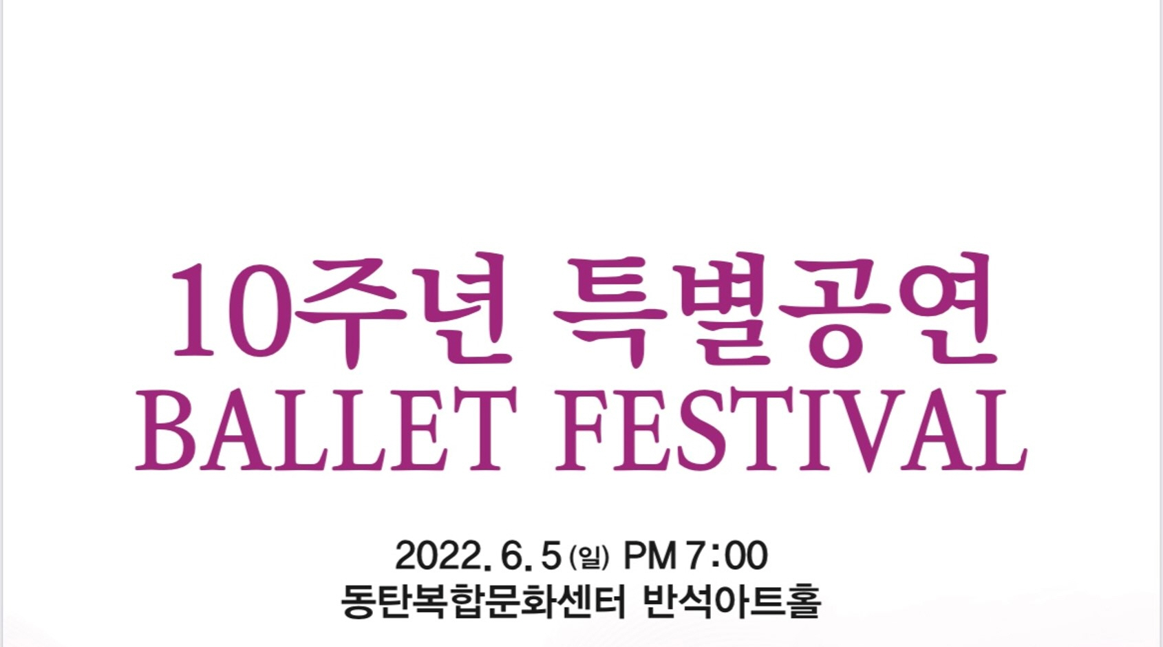 【[공 연]대관공연】10주년 특별공연 BALLET FESTIVAL 장소 동탄복합문화센터 반석아트홀 기간 2022년 6월 5일 ~ 2022년 6월 5일 요일 일 공연시간 2022년 6월 5일(일) PM7:00 (소요시간: 2시간) 티켓정보 전석 1만원 관람등급 전체관람가 문의 031.8015.2944 .. 목록이미지 -문현진 발레단.jpg [ Size : 278.64KB, Down : 131 ] 미리보기 다운로드 목록이미지 -문현진 발레단 문현진 발레단(수정).jpg [ Size : 372.24KB, Down : 674 ] 미리보기 다운로드 문현진 발레단(수정) 목록보기