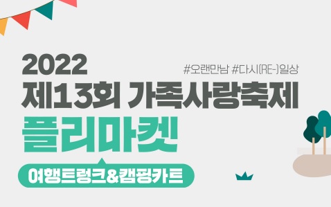 【[기 타] 일정】2022 제13회 가족사랑축제 플리마켓 참여신청_6.17(금) 18시까지 장소 동탄호수공원 산척교 밑 기간 2022년 6월 14일 ~ 2022년 6월 17일 요일 토 공연시간 11:00~17:00 티켓정보 관람등급 문의 031-290-4626 공지 바로가기 (클릭) 공지 < 알림마당 : 화성시문화재단 (hcf.or.kr) 가족사랑축제-플리마켓-목록용.jpg [ Size : 32.02KB, Down : 163 ] 미리보기 다운로드 가족사랑축제-플리마켓-목록용 가족사랑축제-플리마켓-목록용.jpg [ Size : 32.02KB, Down : 161 ] 미리보기 다운로드 가족사랑축제-플리마켓-목록용 (수정본)가족사랑축제 플리마켓 참여자 모집 이미지.jpg [ Size : 364.62KB, Down : 344 ] 미리보기 다운로드 (수정본)가족사랑축제 플리마켓 참여자 모집 이미지 목록보기